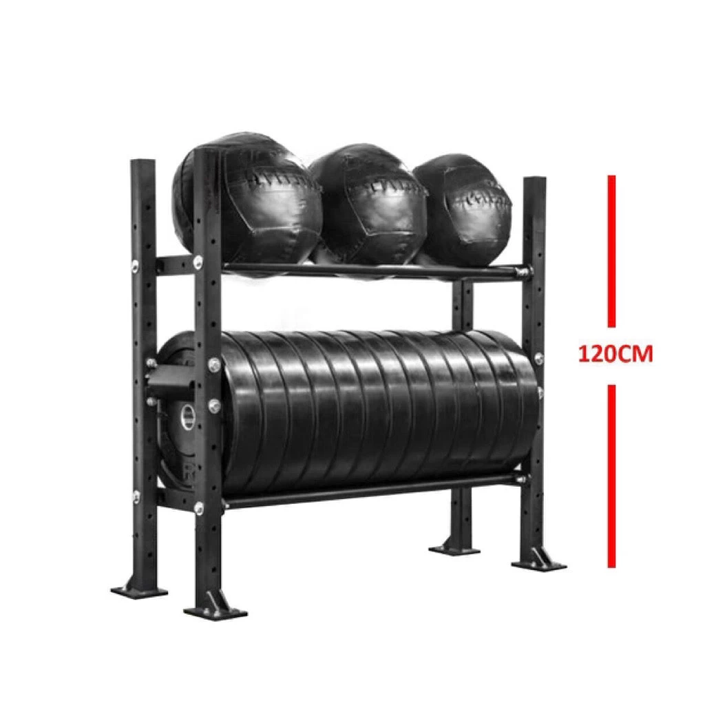 This rack is comprised of 4 capable and tall uprights partnered with 2 secure storage trays that can be stocked full of all your fitness gear.