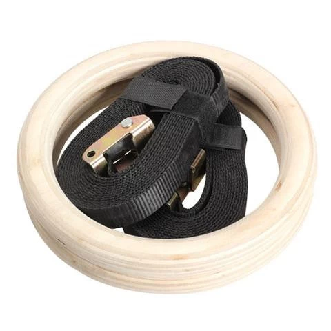 28mm Wood gym rings Ideal for those who have used rings before and are ready to move up to a higher grip surface. These rings measure 233mm OD, 178mm ID, 28mm thick. Complete with 5m straps, and locking clips, so you can adjust the length as required.
